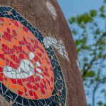 小孩子如果不曾打破碗盤,那麼童年就白過了,於是孩子用這些媲美「彩色馬賽克」的「手滑傑作」裝飾碉堡,最後連完整的盤子都用上了,因?yàn)楹⒆酉胫噩F(xiàn)妖精「骨碌碌轉(zhuǎn)著的眼睛」還有飛揚(yáng)的「眼淚泡泡」;接著,孩子想起媽媽做糕點(diǎn)有剩些麵粉,想不到它們竟然是最好的黏著劑!接近完工時(shí),森林裡的妖精也一起來幫忙,在孩子忽略掉的小地方,仔細(xì)貼上紅色抿石子,就像媽媽的腮紅一樣。