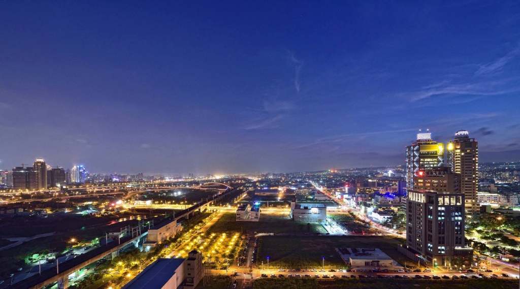 與家人一起在大陽臺望著七期城市星夜,