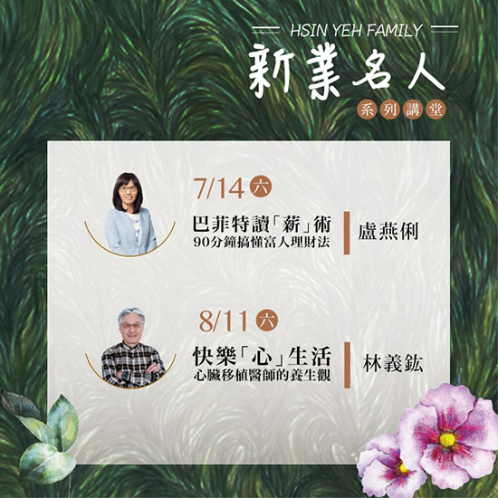 | 回新知新訊新業(yè)家族 7、8月系列活動─「新業(yè)名人講堂」