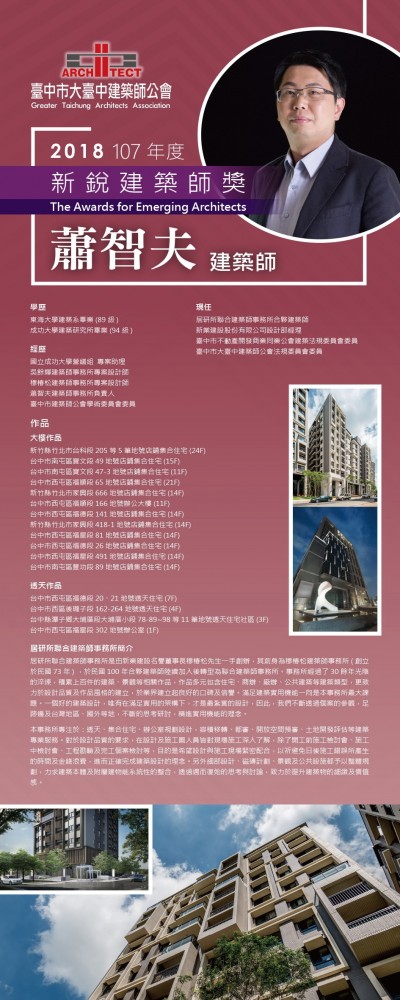 新業(yè)蕭智夫建築師榮獲【2018年新銳建築師】獎項,