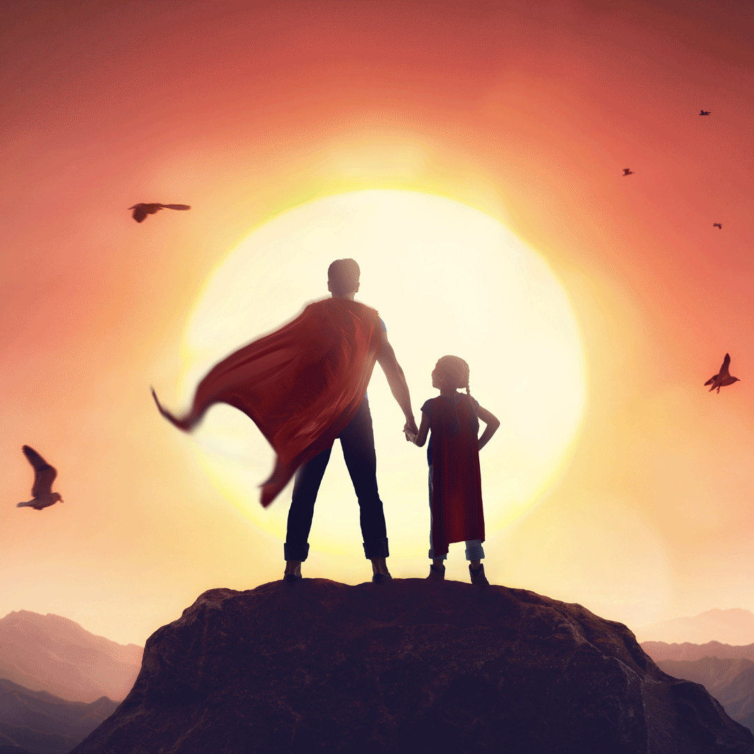 看著那如漫威英雄般寬闊的膀臂與有力的胳膊, 讓我即使踏上顛峰,也能穩(wěn)穩(wěn)站立。 緊緊包覆著我手心,那掌心的溫度, 讓我不至於在人生中迷了路; 學(xué)爸爸披上披風(fēng),一切都天不怕地不怕, 這份勇闖人生、鋼鐵般的勇氣, 是這位英雄爸爸給的, 或許像硬漢般不懂得與孩子暖心對(duì)話, 但他給予並守護(hù)的一切總是緊扣著愛。