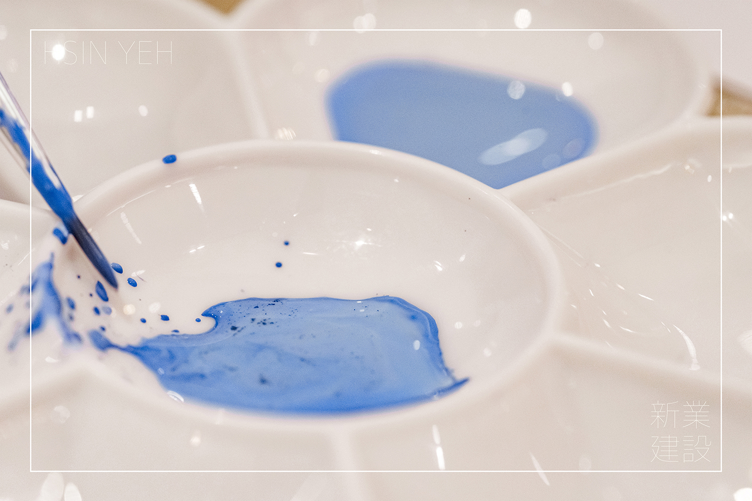 畫筆,蘸滿藍(lán)彩,筆鋒或濃或淡,