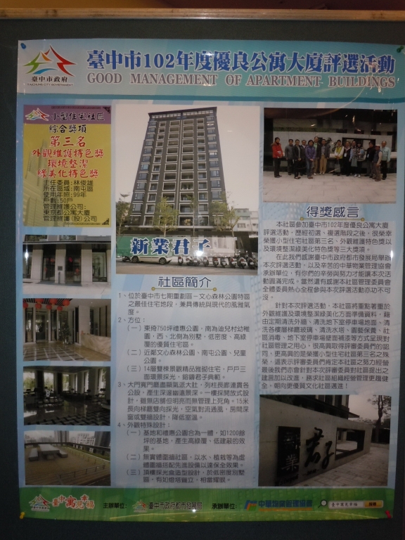 【新業(yè)君子】榮獲臺(tái)中市102年度優(yōu)良公寓大廈評(píng)選三項(xiàng)大獎(jiǎng)
