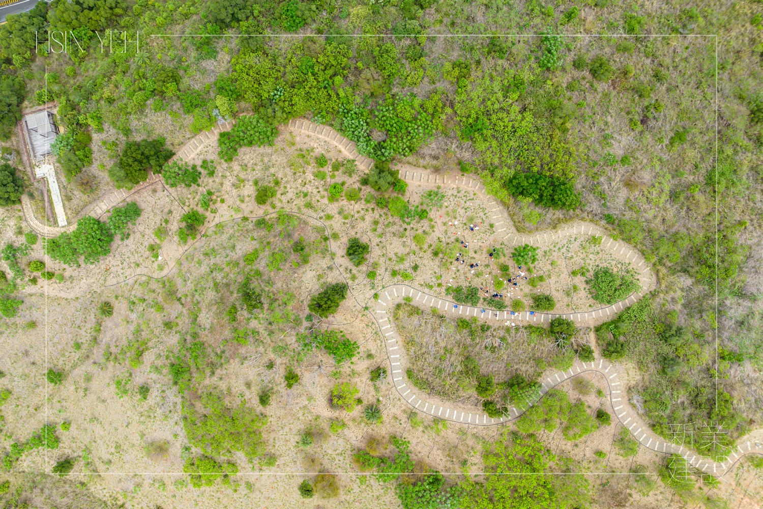 一群人,走過(guò)曲徑小坡,